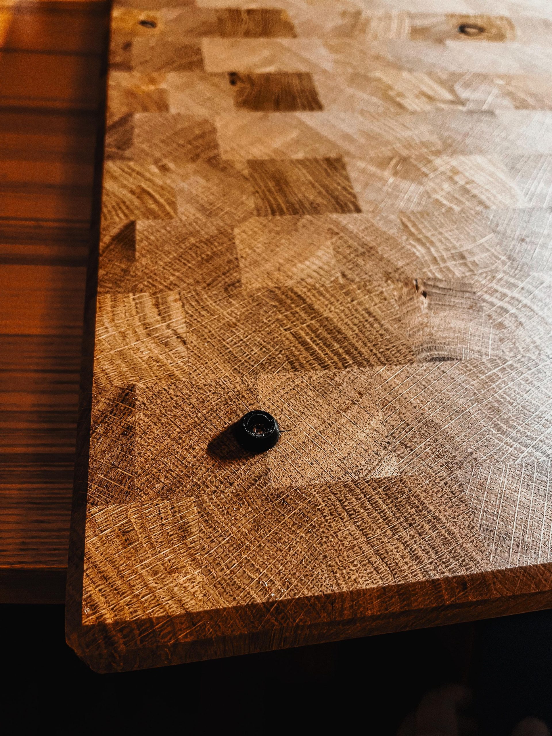 Dieses exklusive Stirnholz-Schneidebrett aus Eiche oder Lärche wird in präziser Handarbeit gefertigt und vereint maximale Stabilität mit zeitlosem Design. Die Hirnholzstruktur macht die Oberfläche besonders schnittfest, langlebig und messerschonend – ideal für ambitionierte Hobbyköche und echte Profis.